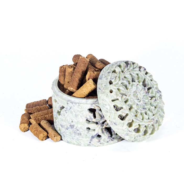 Cofre Tallado a Mano en Piedra Esteatita lleno de tus inciensos favoritos, elige tu aroma.